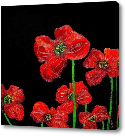 Картина "Красные цветы на черном"