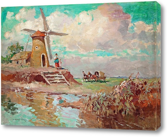 Картина "Пейзаж с ветряной мельницей"