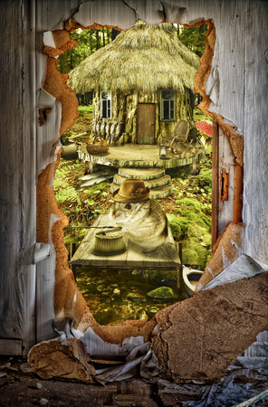 Фотоообои с изображением разрушенной стены, с выходом в лесную сказку, к лесным жителям, отличное дополнение к оформлению комнаты