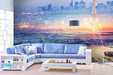 Фотообои с изображением пейзажа морского берега на закате, на фоне которого видны здания мегаполиса и знаменитая Эйфелева башня.