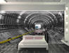 Авто в железнодорожном тоннеле, в монохромных оттенках, такие обои визуально расширят вашу комнату, а яркий акцент разбавит цветовую гамму вашего интерьера.