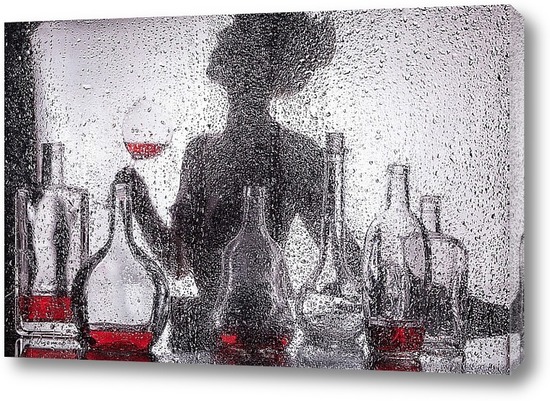 Картина "Силуэт девушки за мокрым стеклом."
