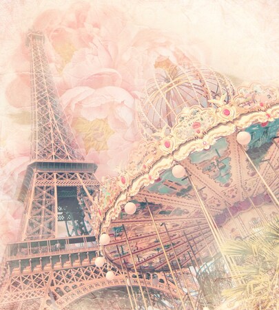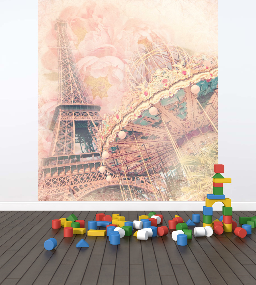 Фотообои "Винтажная карусель и Эйфелева башня"