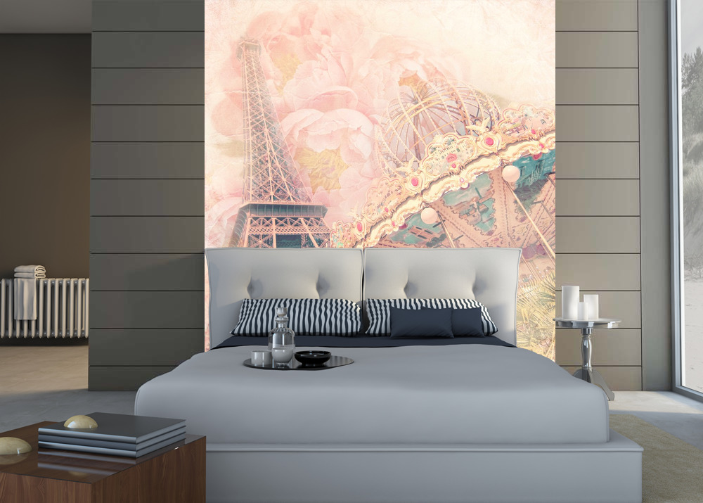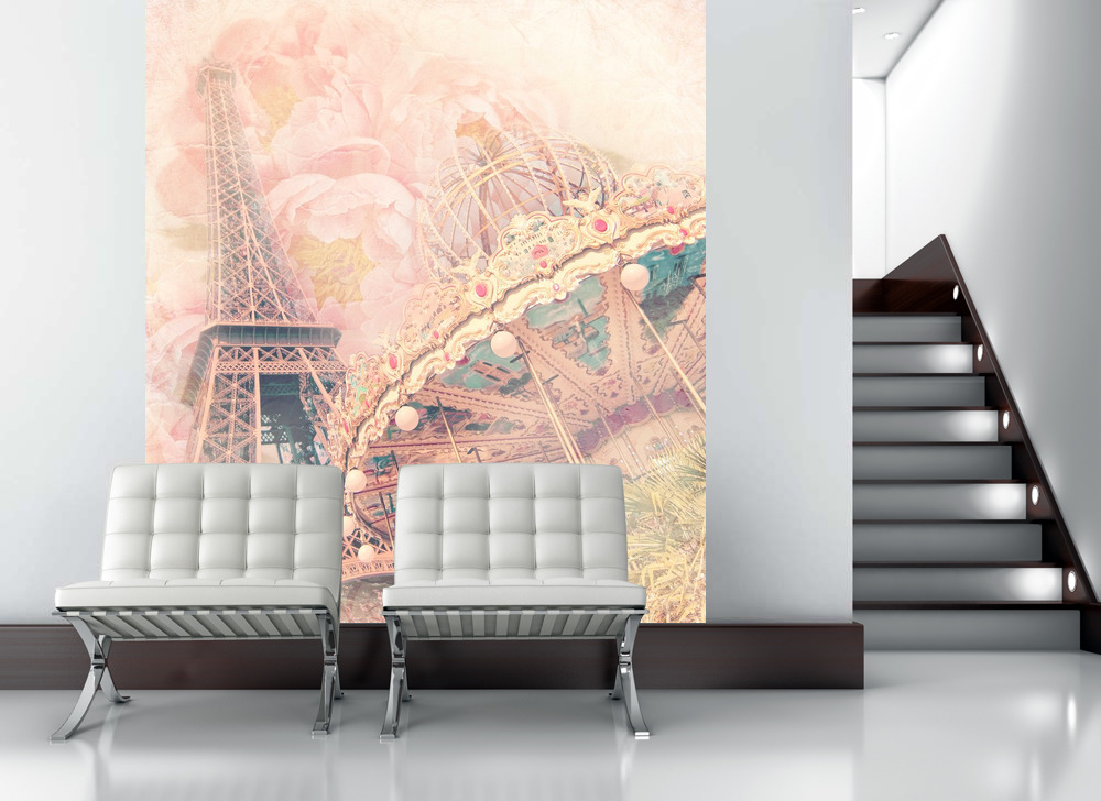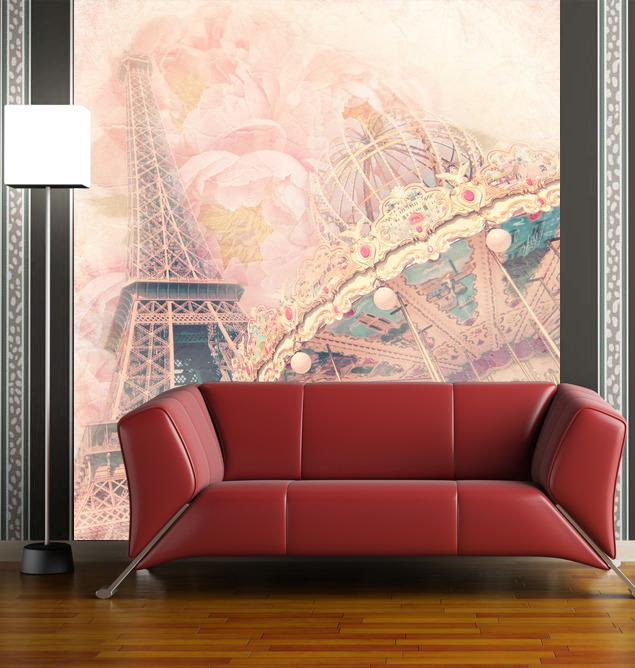 Фотообои на стену Винтажная карусель и Эйфелева башня