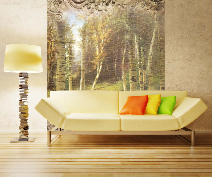 Флизелиновые фотообои с ПВХ-покрытием (виниловые фотообои на флизелиновой основе). Фактура  фреска.Материал пожаробезопасен и может использоваться в помещениях с повышенными требованиями пожарной безопасности. Плотность фотообоев изготовленных из данного материала составляет : 300 гр/м²