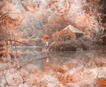 Изображение Домика на воде в приглушенной оранжевой цветовой гамме, придаст неповторимый колорит интерьеру. Подойдет для прихожих, коридоров, спален и гостиных