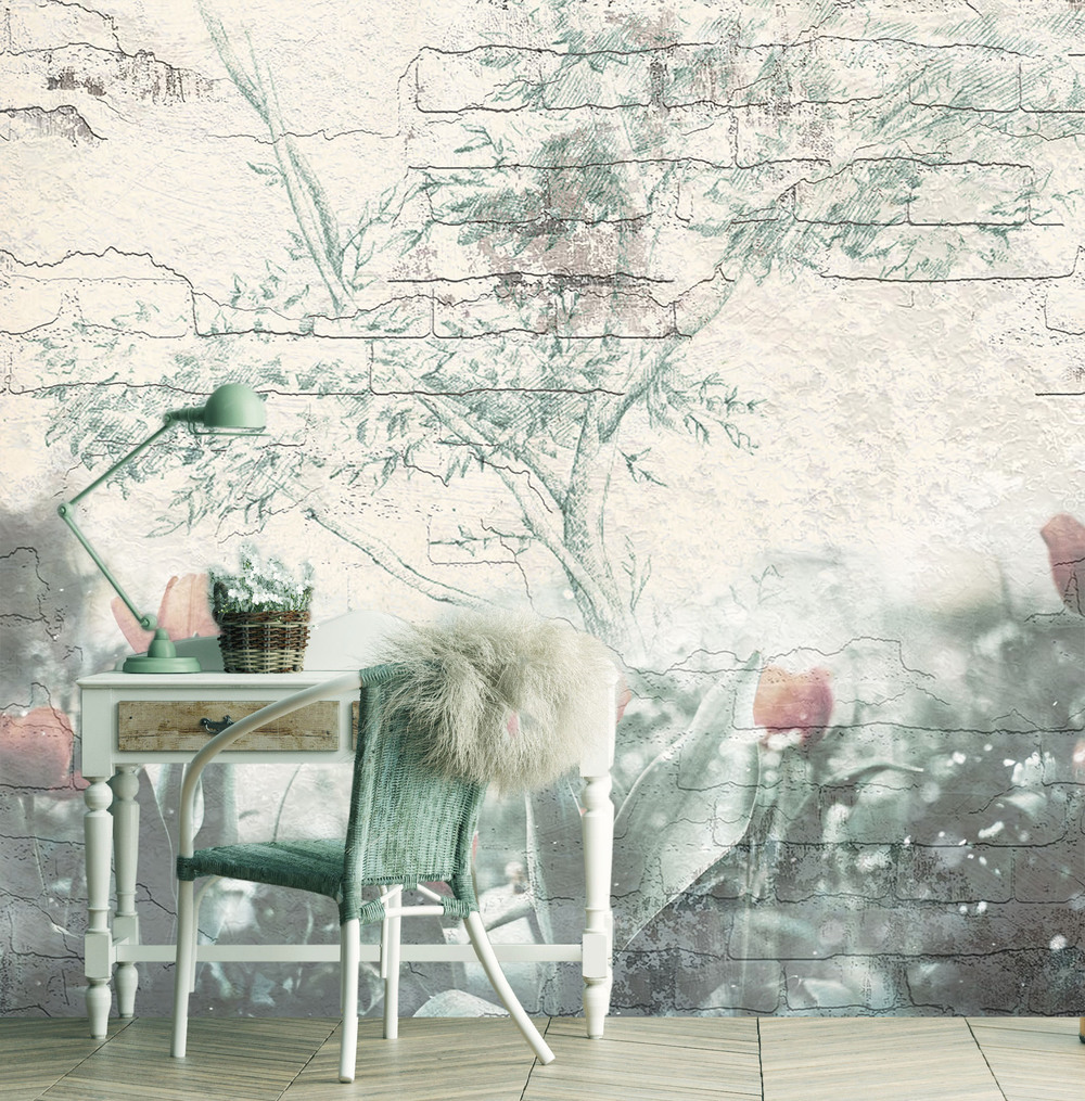 Фотообои с изображением красных тюльпанов на фоне стены, прекрасное и оригинальное дополнение к оформлению Вашей комнаты