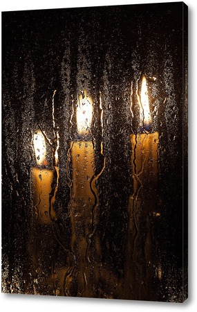Свечи за мокрым стеклом.