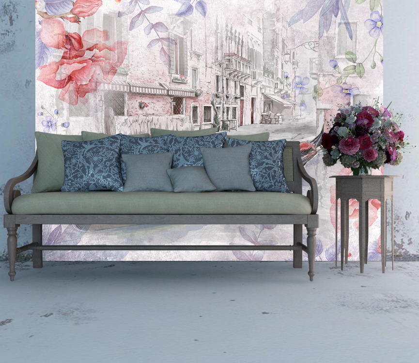 Флизелиновые фотообои с ПВХ-покрытием (виниловые фотообои на флизелиновой основе). Фактура  фреска.Материал пожаробезопасен и может использоваться в помещениях с повышенными требованиями пожарной безопасности. Плотность фотообоев изготовленных из данного материала составляет : 300 гр/м²