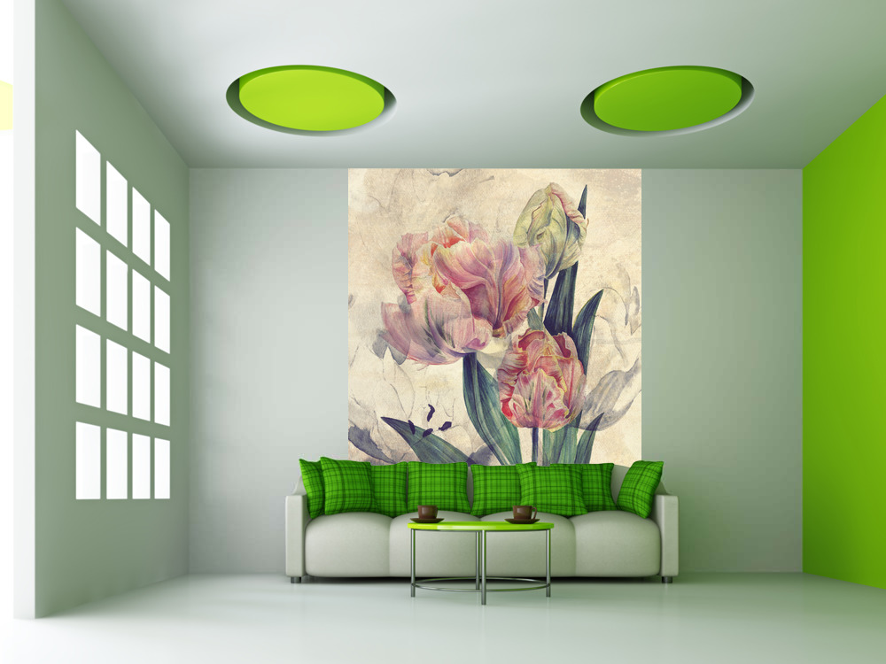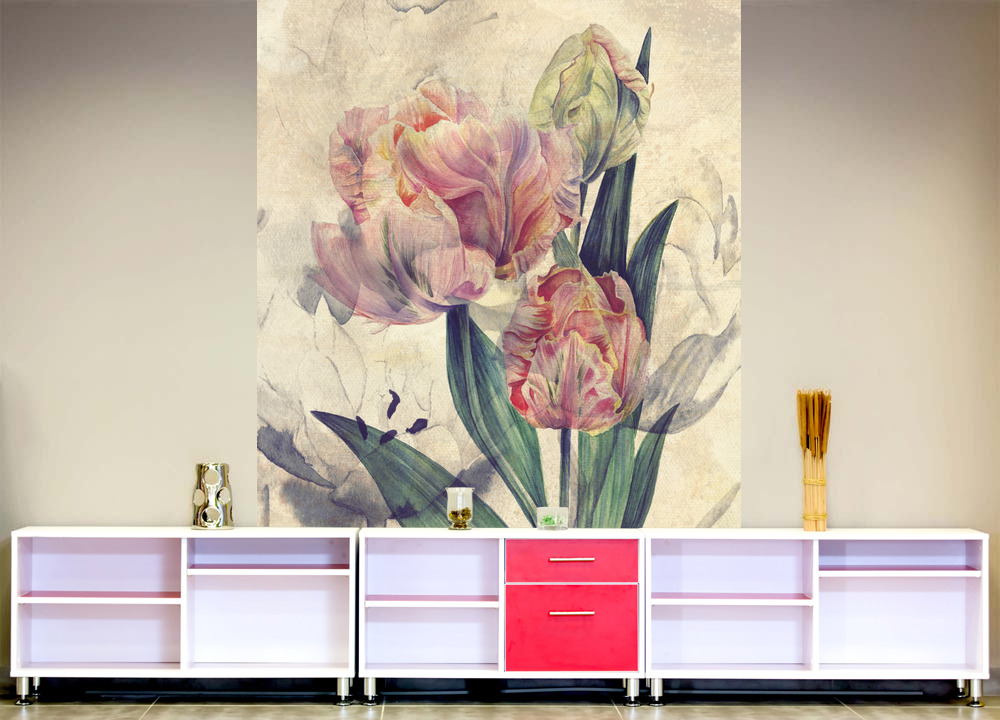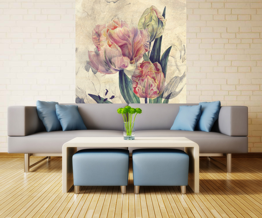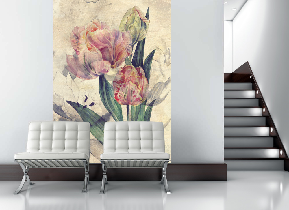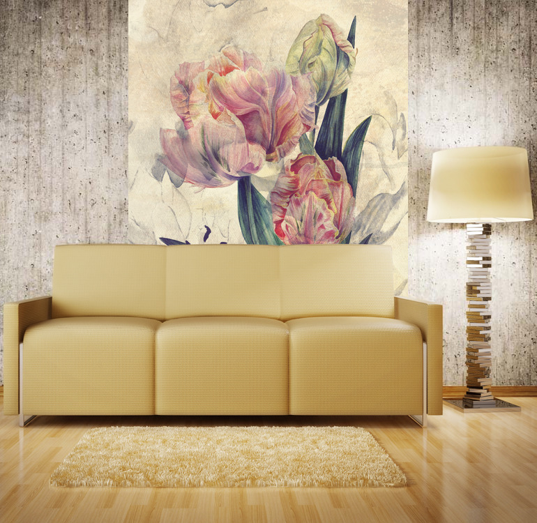 Флизелиновые фотообои с ПВХ-покрытием (виниловые фотообои на флизелиновой основе). Фактура  фреска.Материал пожаробезопасен и может использоваться в помещениях с повышенными требованиями пожарной безопасности. Плотность фотообоев изготовленных из данного материала составляет : 300 гр/м²