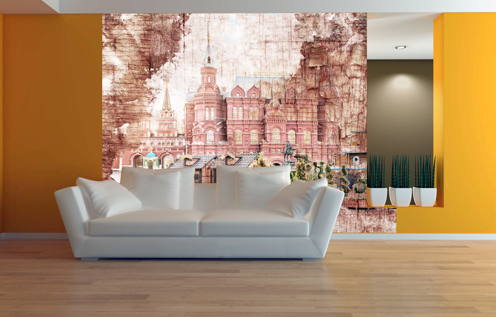 Флизелиновые фотообои с ПВХ-покрытием (виниловые фотообои на флизелиновой основе). Фактура  фреска.Материал пожаробезопасен и может использоваться в помещениях с повышенными требованиями пожарной безопасности. Плотность фотообоев изготовленных из данного материала составляет : 300 гр/м²