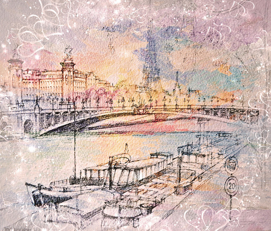 Рисунок Парижа.Такие фото обои подойдут для гостиной, спальни или комнаты отдыха.Станут хорошим дополнением современного интерьера.