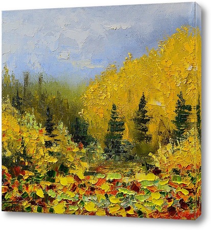 Картина "Осень золотая " ( холст масло мастихин 2016 год размер 37 см на 37 см ) Художник Столяров Вадим Анатольевич.