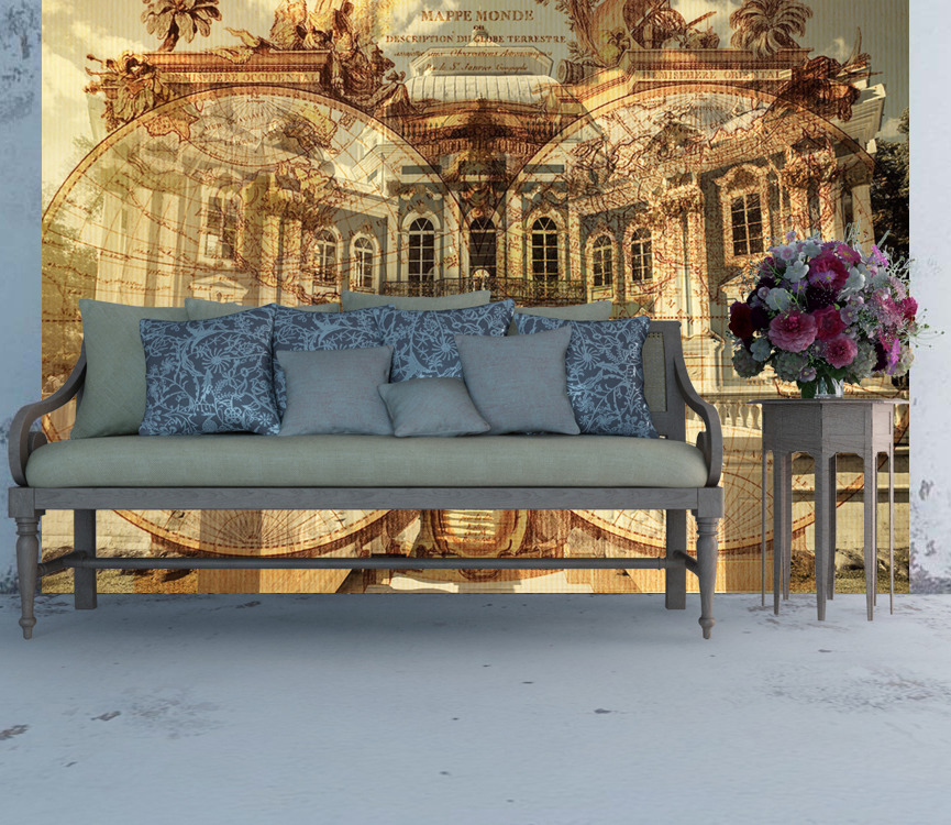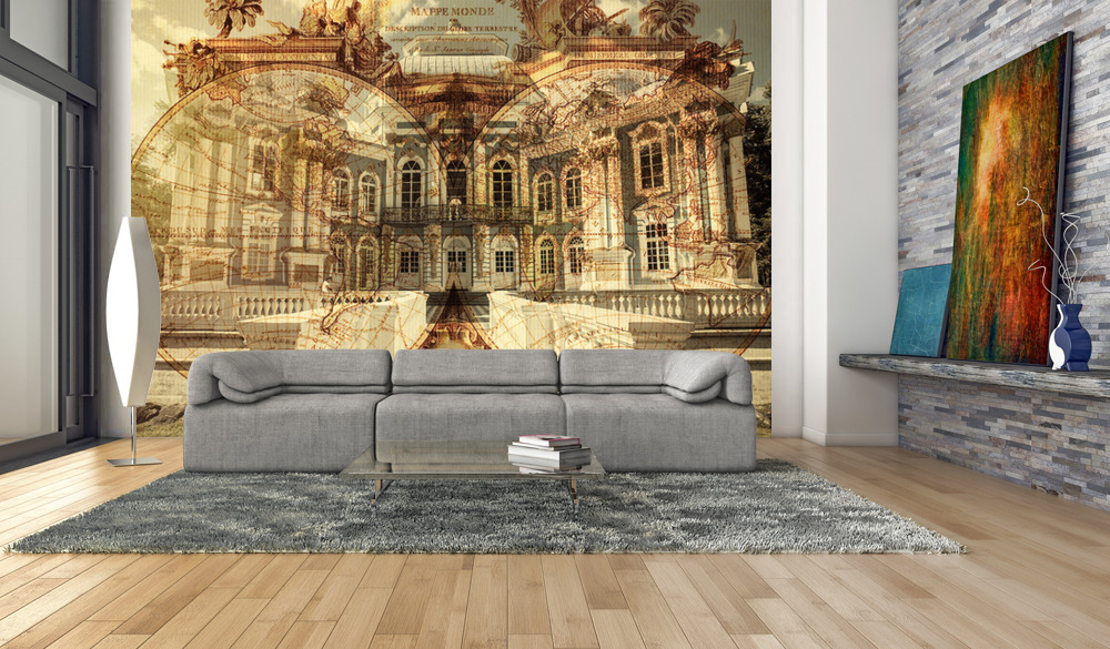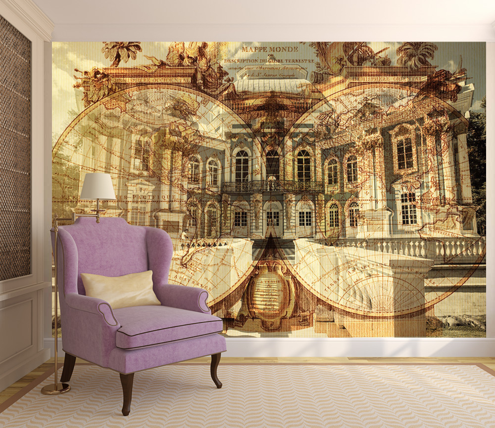 Флизелиновые фотообои с ПВХ-покрытием (виниловые фотообои на флизелиновой основе). Фактура  фреска.Материал пожаробезопасен и может использоваться в помещениях с повышенными требованиями пожарной безопасности. Плотность фотообоев изготовленных из данного материала составляет : 300 гр/м²