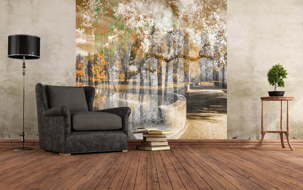 Флизелиновые фотообои с ПВХ-покрытием (виниловые фотообои на флизелиновой основе). Фактура  фреска.Материал пожаробезопасен и может использоваться в помещениях с повышенными требованиями пожарной безопасности. Плотность фотообоев изготовленных из данного материала составляет : 300 гр/м²