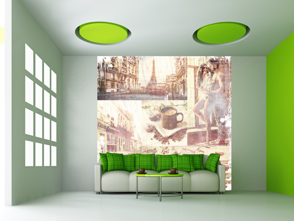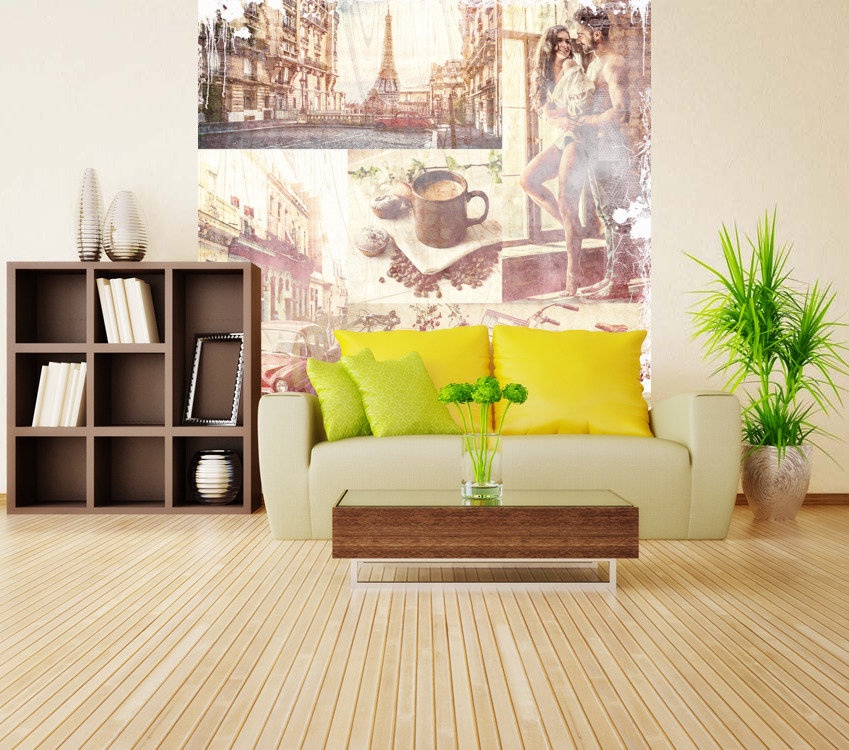 Флизелиновые фотообои с ПВХ-покрытием (виниловые фотообои на флизелиновой основе). Фактура  фреска.Материал пожаробезопасен и может использоваться в помещениях с повышенными требованиями пожарной безопасности. Плотность фотообоев изготовленных из данного материала составляет : 300 гр/м²