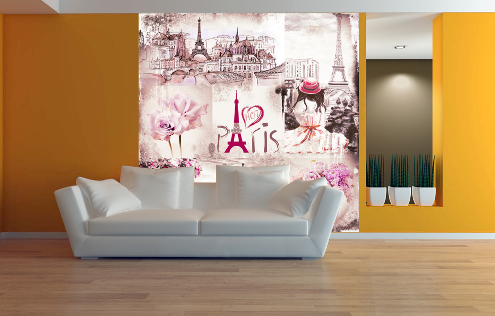 Флизелиновые фотообои с ПВХ-покрытием (виниловые фотообои на флизелиновой основе). Фактура  фреска.Материал пожаробезопасен и может использоваться в помещениях с повышенными требованиями пожарной безопасности. Плотность фотообоев изготовленных из данного материала составляет : 300 гр/м²