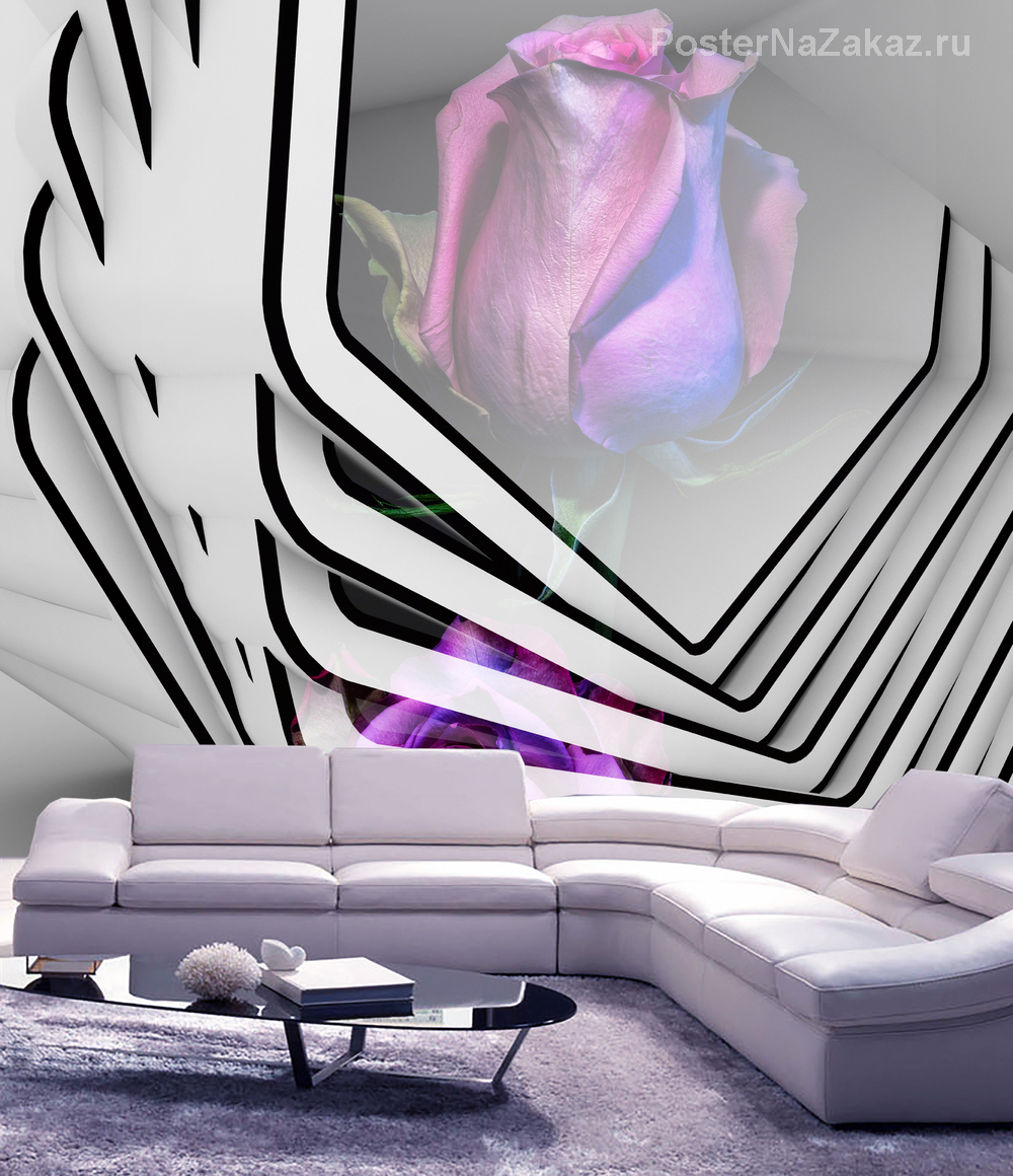 Фотообои с изображением геометрической абстракции с силуэтом розы, отличное и интересное дополнение к оформлению вашей комнаты