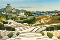 Фотообои с изображением террасы с видом на красочный пейзаж рисовых полей и неповторимой архитектуры Китая украсят и дополнят интерьер. Прекрасно подойдет для спальни и гостиной.