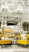 Фотообои с изображением желтого ретро автомобиля на фоне городского зданий в стиле лофт украсят и дополнят интерьер. Прекрасно подойдет для спальни и гостиной.