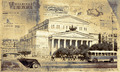 Фотообои с изображением Большого театра в Москве 1962 года на фоне советских газет в ретро стиле украсят и дополнят интерьер. Прекрасно подойдет для кухни и обеденной зоны.