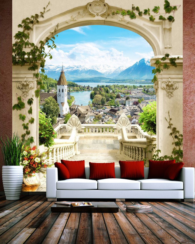 Флизелиновые фотообои с ПВХ-покрытием (виниловые фотообои на флизелиновой основе). Фактура  фреска.Материал пожаробезопасен и может использоваться в помещениях с повышенными требованиями пожарной безопасности. Плотность фотообоев изготовленных из данного материала составляет : 300 гр/м²