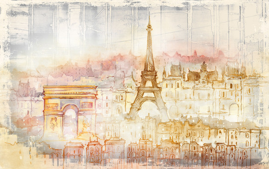 Фотообои с изображением панорамы Парижа с Эйфелевой башней и Триумфальной аркой в стиле рисунка от руки украсят и дополнят интерьер. Прекрасно подойдет для спальни и гостиной.