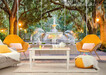 Фотообои с изображением неповторимого пейзажа за окном - красочного парка с фонтаном в окружении деревьев, украсят и дополнят интерьер. Прекрасно подойдет для спальни и гостиной.