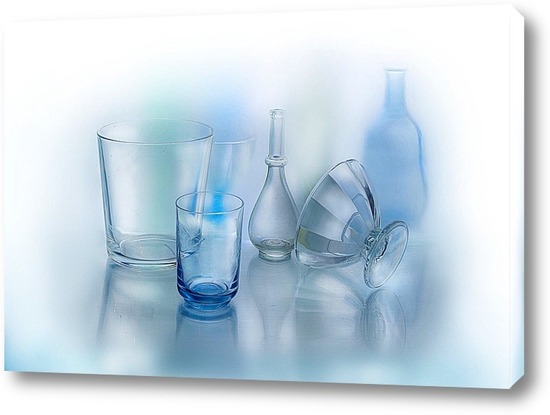 Картина "Стеклянные предметы на светло-голубом фоне"