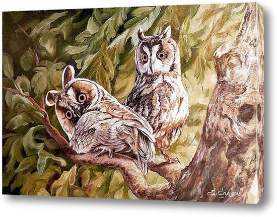 Описание картины Счастье хрупко, любой шорох, любой звук иногда может нарушить деликатность момента. Парочка симпатичных сов, тому подтверждение... в момент ухаживания, в момент уединенной беседы, подальше от чужих глаз...Счастье любит тишину!!!