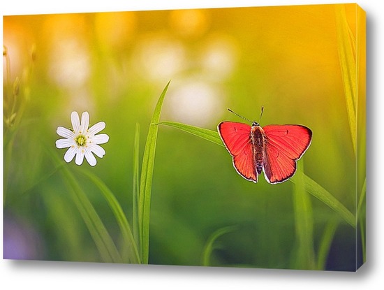 Картина "яркая оранжевая бабочка сидит на летнем лугу"