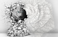 Фотообои с изображением бенгальского тигра среди разрушенной стены с 3D эффектом на фоне розы украсят и дополнят интерьер. Прекрасно подойдет для спальни и гостиной.