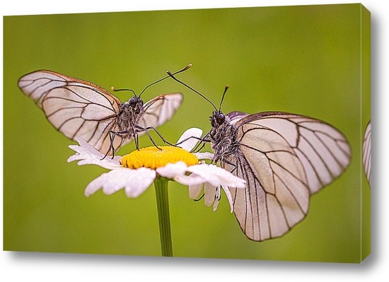 Картина "бабочки на цветке ромашки"