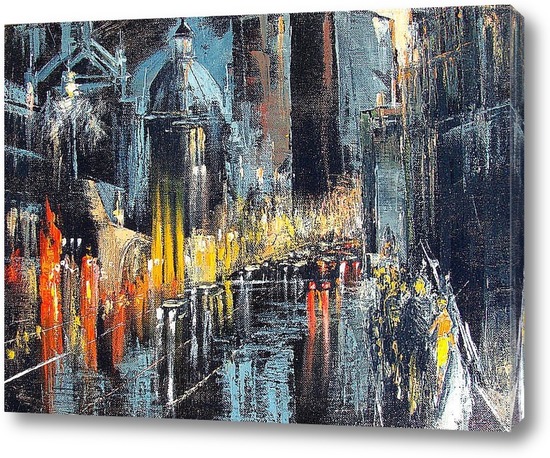 Описание картины картина для интерьера, картина в офис, картина в комнату, россия, постер, Тюмень, москва, город, картина маслом, импрессионизм, пейзаж, дорога, ночь, улица, проспект