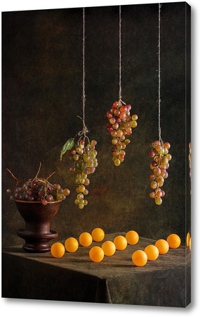 Картина "Натюрморт с виноградом и оранжевыми шариками"