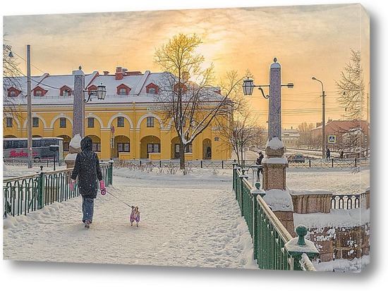 Картина "Утренний снегопад. Красногвардейский мост."