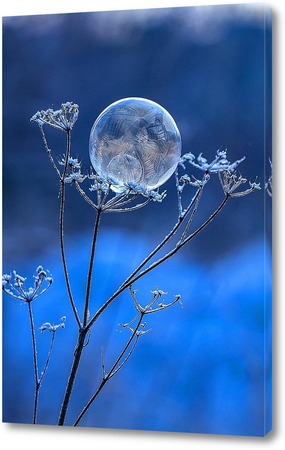 Замёрзший мыльный пузырь на высохшем цветке