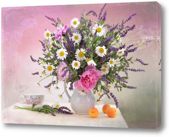 Картина "Ароматный букет. Ромашки. Пионы"