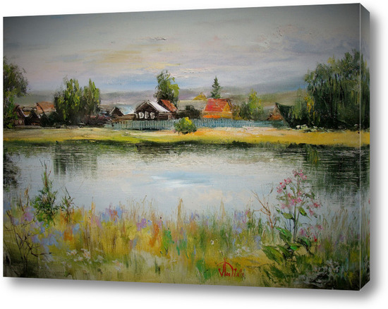Описание картины река,речка,пруд,лето,деревня,домик,цветы,озеро,пейзаж,постре на стену,картина астана,картина минск,картина,москва,импрессионизм,картина на заказ,панно,купить модульная картину,картина для офиса,постер для интерьера,картина маслом,летний пейзаж,речной