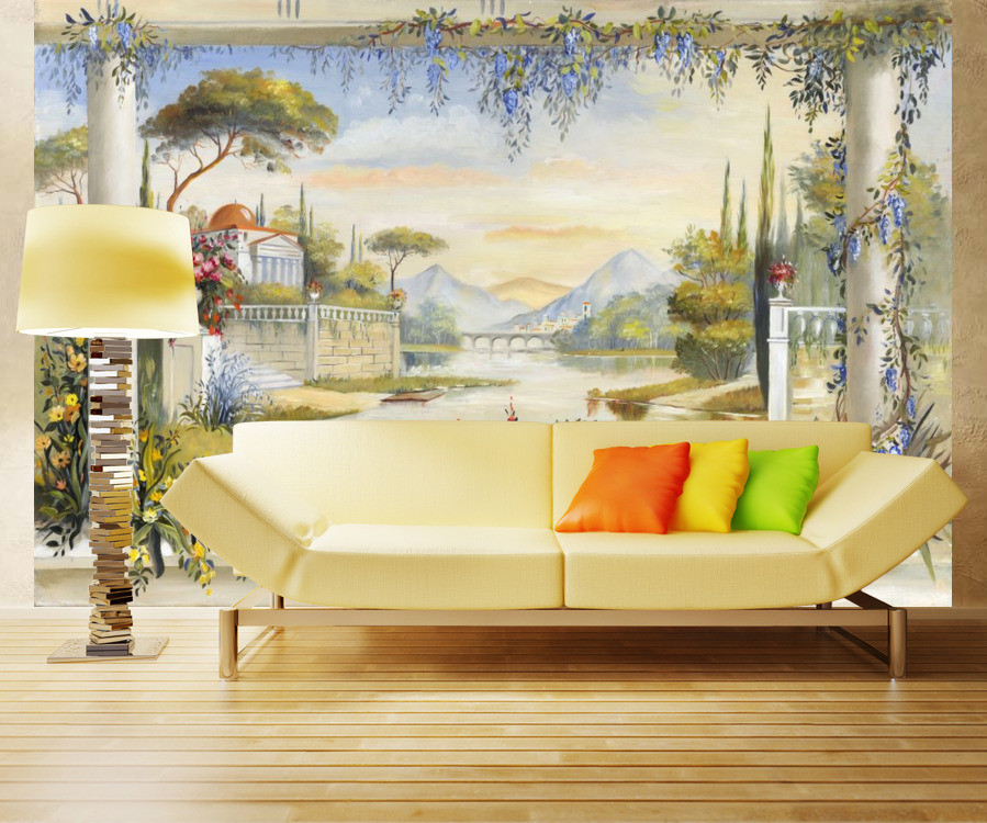 Флизелиновые фотообои с ПВХ-покрытием (виниловые фотообои на флизелиновой основе). Фактура  фреска.Материал пожаробезопасен и может использоваться в помещениях с повышенными требованиями пожарной безопасности. Плотность фотообоев изготовленных из данного материала составляет : 300 гр/м²