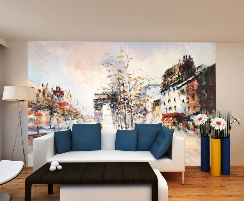 Флизелиновые фотообои с ПВХ-покрытием (виниловые фотообои на флизелиновой основе). Фактура  фреска.Материал пожаробезопасен и может использоваться в помещениях с повышенными требованиями пожарной безопасности. Плотность фотообоев изготовленных из данного материала составляет : 300 гр/м²
