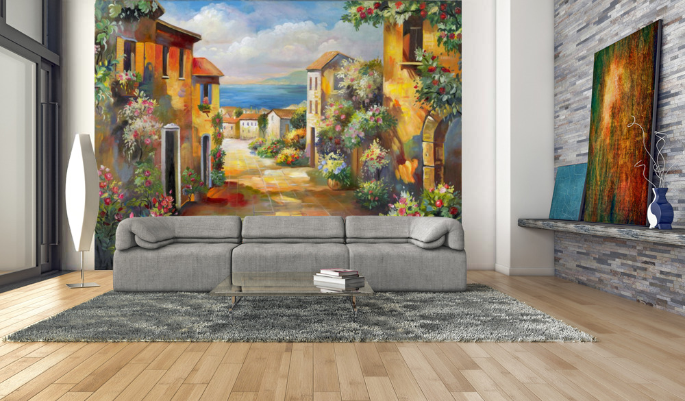 Флизелиновые фотообои с ПВХ-покрытием (виниловые фотообои на флизелиновой основе). Фактура  фреска.Материал пожаробезопасен и может использоваться в помещениях с повышенными требованиями пожарной безопасности. Плотность фотообоев изготовленных из данного материала составляет : 300 гр/м²