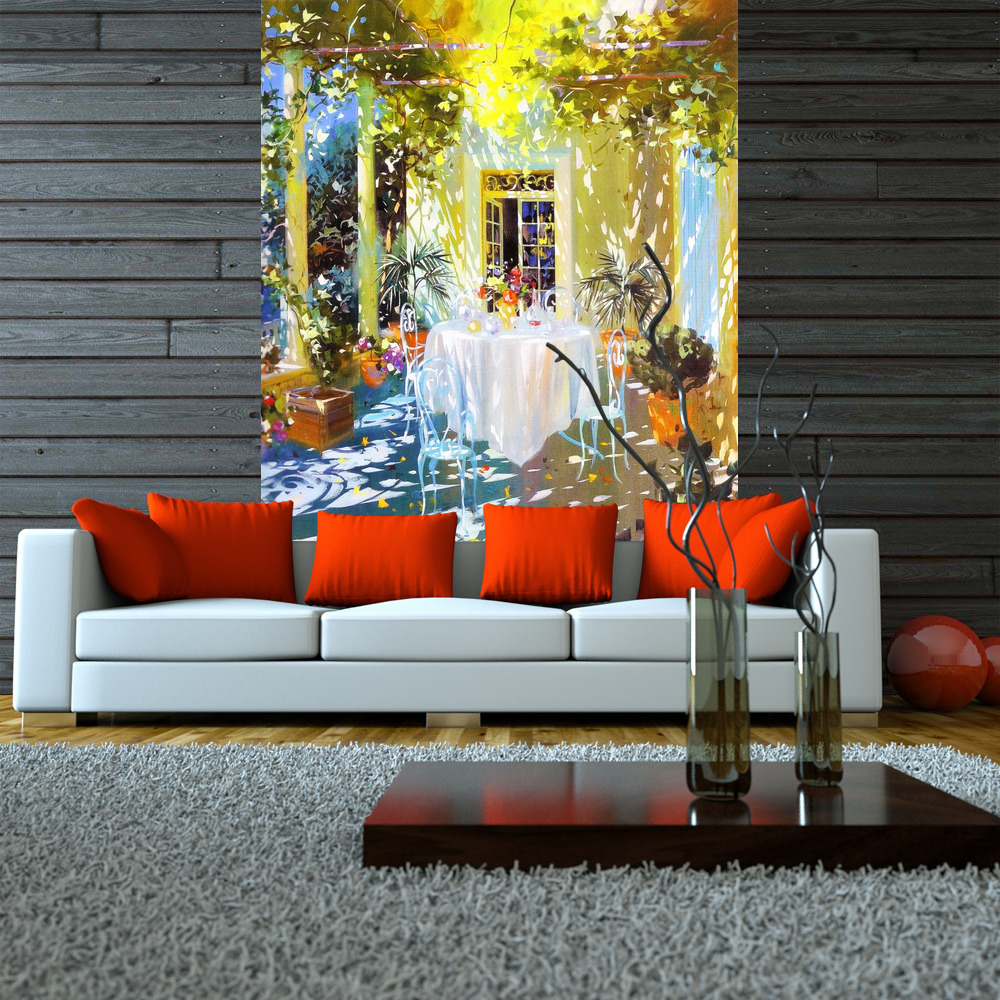 Флизелиновые фотообои с ПВХ-покрытием (виниловые фотообои на флизелиновой основе). Фактура  фреска.Материал пожаробезопасен и может использоваться в помещениях с повышенными требованиями пожарной безопасности. Плотность фотообоев изготовленных из данного материала составляет : 300 гр/м²