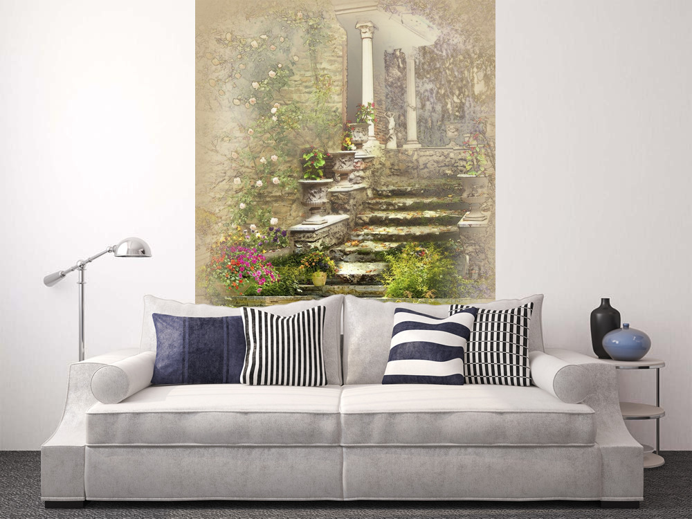 Флизелиновые фотообои с ПВХ-покрытием (виниловые фотообои на флизелиновой основе). Фактура  фреска.Материал пожаробезопасен и может использоваться в помещениях с повышенными требованиями пожарной безопасности. Плотность фотообоев изготовленных из данного материала составляет : 300 гр/м²