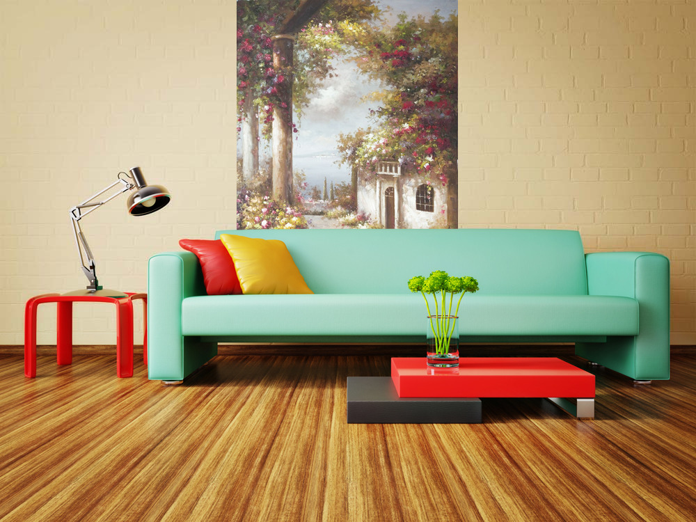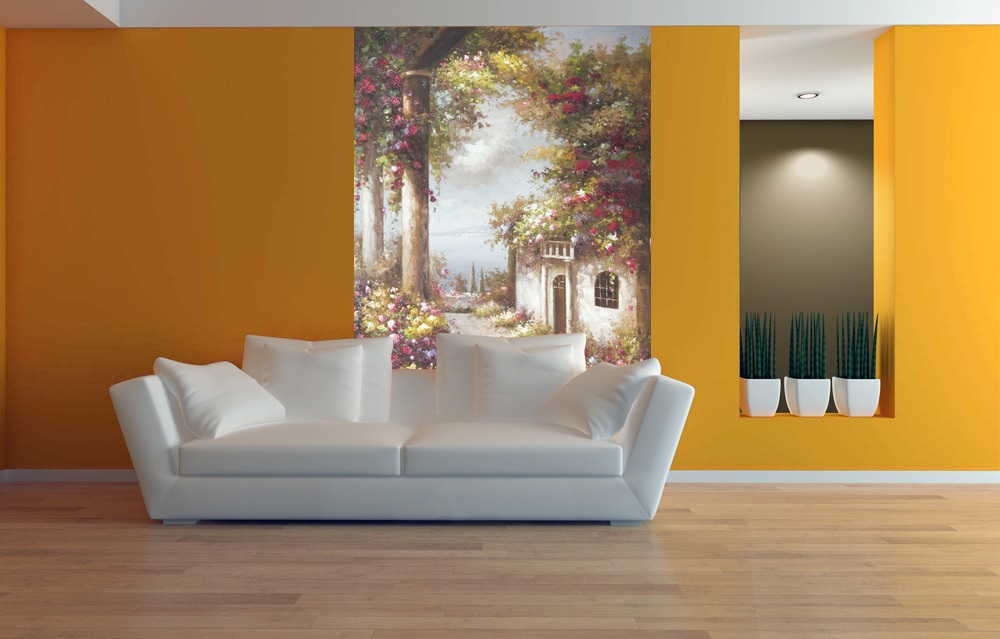 Флизелиновые фотообои с ПВХ-покрытием (виниловые фотообои на флизелиновой основе). Фактура  фреска.Материал пожаробезопасен и может использоваться в помещениях с повышенными требованиями пожарной безопасности. Плотность фотообоев изготовленных из данного материала составляет : 300 гр/м²