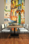 Флизелиновые фотообои с ПВХ-покрытием (виниловые фотообои на флизелиновой основе). Фактура  фреска.Материал пожаробезопасен и может использоваться в помещениях с повышенными требованиями пожарной безопасности. Плотность фотообоев изготовленных из данного материала составляет : 300 гр/м²