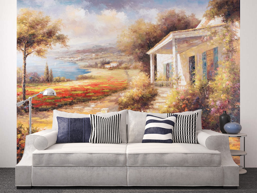 Флизелиновые фотообои с ПВХ-покрытием (виниловые фотообои на флизелиновой основе). Фактура  фреска.Материал пожаробезопасен и может использоваться в помещениях с повышенными требованиями пожарной безопасности. Плотность фотообоев изготовленных из данного материала составляет : 300 гр/м²
