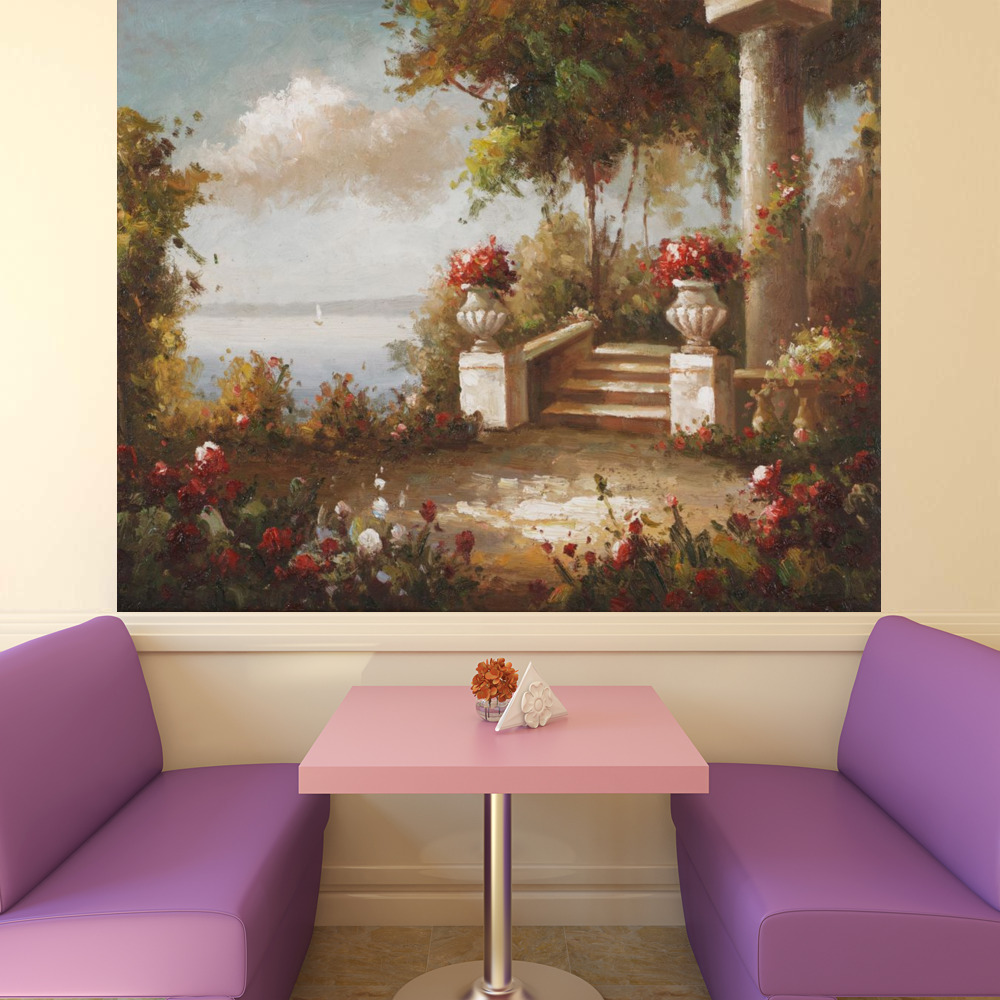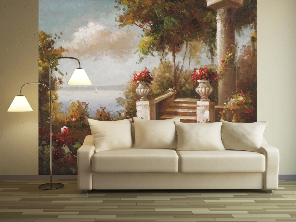 Флизелиновые фотообои с ПВХ-покрытием (виниловые фотообои на флизелиновой основе). Фактура  фреска.Материал пожаробезопасен и может использоваться в помещениях с повышенными требованиями пожарной безопасности. Плотность фотообоев изготовленных из данного материала составляет : 300 гр/м²