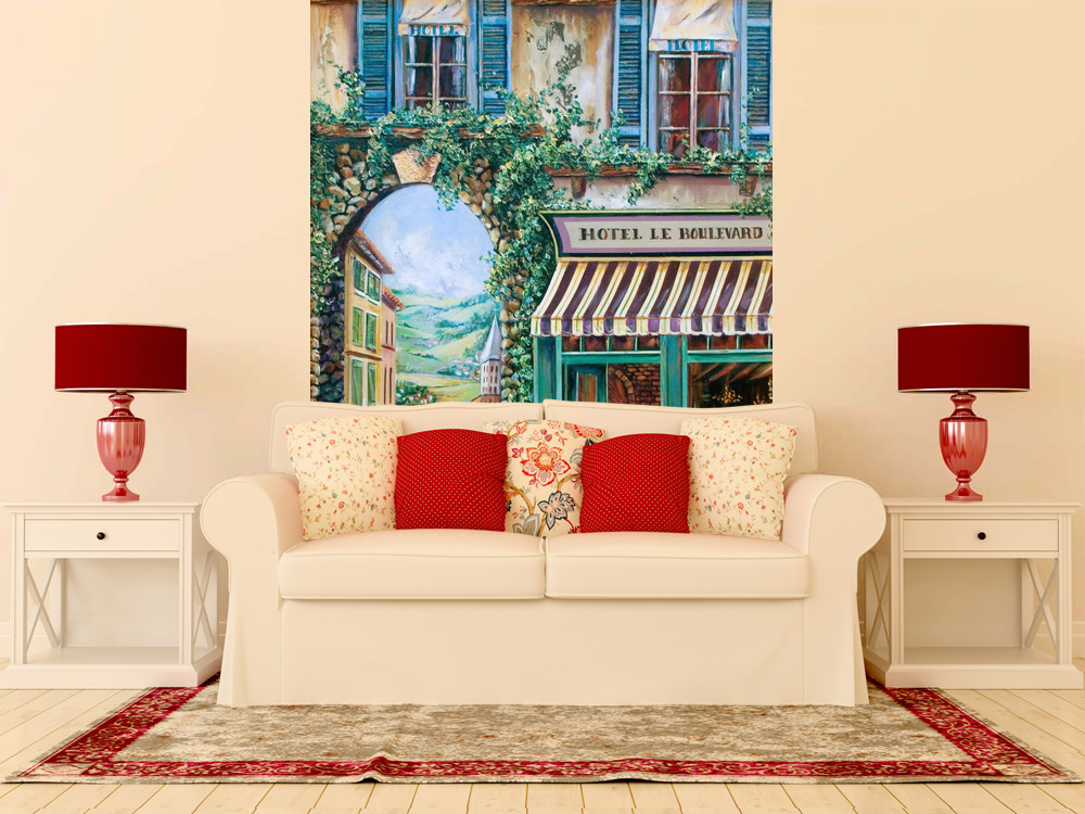 Флизелиновые фотообои с ПВХ-покрытием (виниловые фотообои на флизелиновой основе). Фактура  фреска.Материал пожаробезопасен и может использоваться в помещениях с повышенными требованиями пожарной безопасности. Плотность фотообоев изготовленных из данного материала составляет : 300 гр/м²