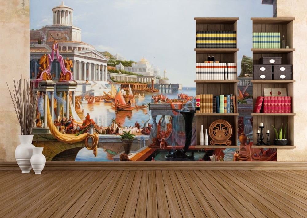 Флизелиновые фотообои с ПВХ-покрытием (виниловые фотообои на флизелиновой основе). Фактура  фреска.Материал пожаробезопасен и может использоваться в помещениях с повышенными требованиями пожарной безопасности. Плотность фотообоев изготовленных из данного материала составляет : 300 гр/м²